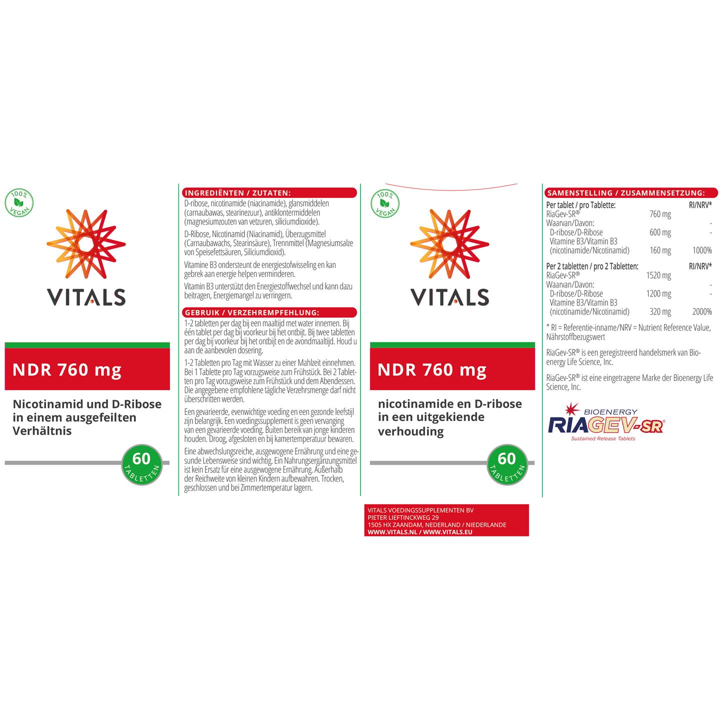 D-Ribose, Nicotinamide (Niacinamide), Glansmiddelen (Carnaubawas, Stearinezuur), Antiklontermiddelen (Magnesiumzouten van vetzuren, Siliciumdioxide).