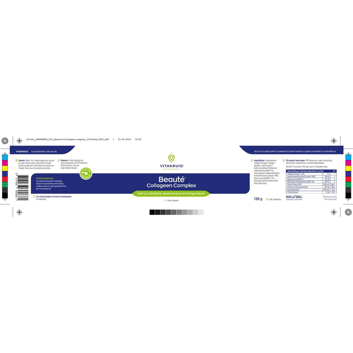 Gehydrolyseerd collageen (Solugel® collageen peptides, rund), Vitamine C (calciumascorbaat), Moldavische Drakenkop (Dracobelle® Nu, Dracocephalum moldavica), Gehydrolyseerde keratine (Cynatine® HNS), Hyaluronzuur (HyaMax®), Zink (picolinaat), Biotine (vitamine B8), Koper (gluconaat).