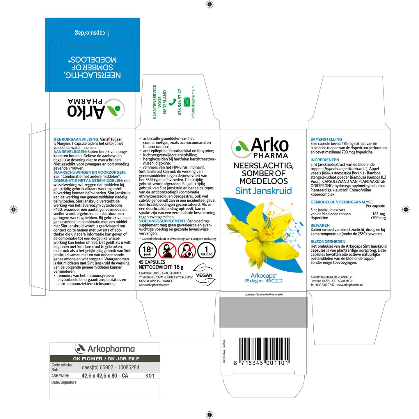 Sint Janskruidextract van de bloeiende toppen (Hypericum perforatum L.), Appelvezels (Malus domestica Borkh.), Bamboe stengelexudaat poeder (Bambusa bambos (L.) Voss.), Capsulewand van plantaardige oorsprong (Hydroxypropylmethylcellulose), Plantaardige kleurstof (Chlorofylline kopercomplex).