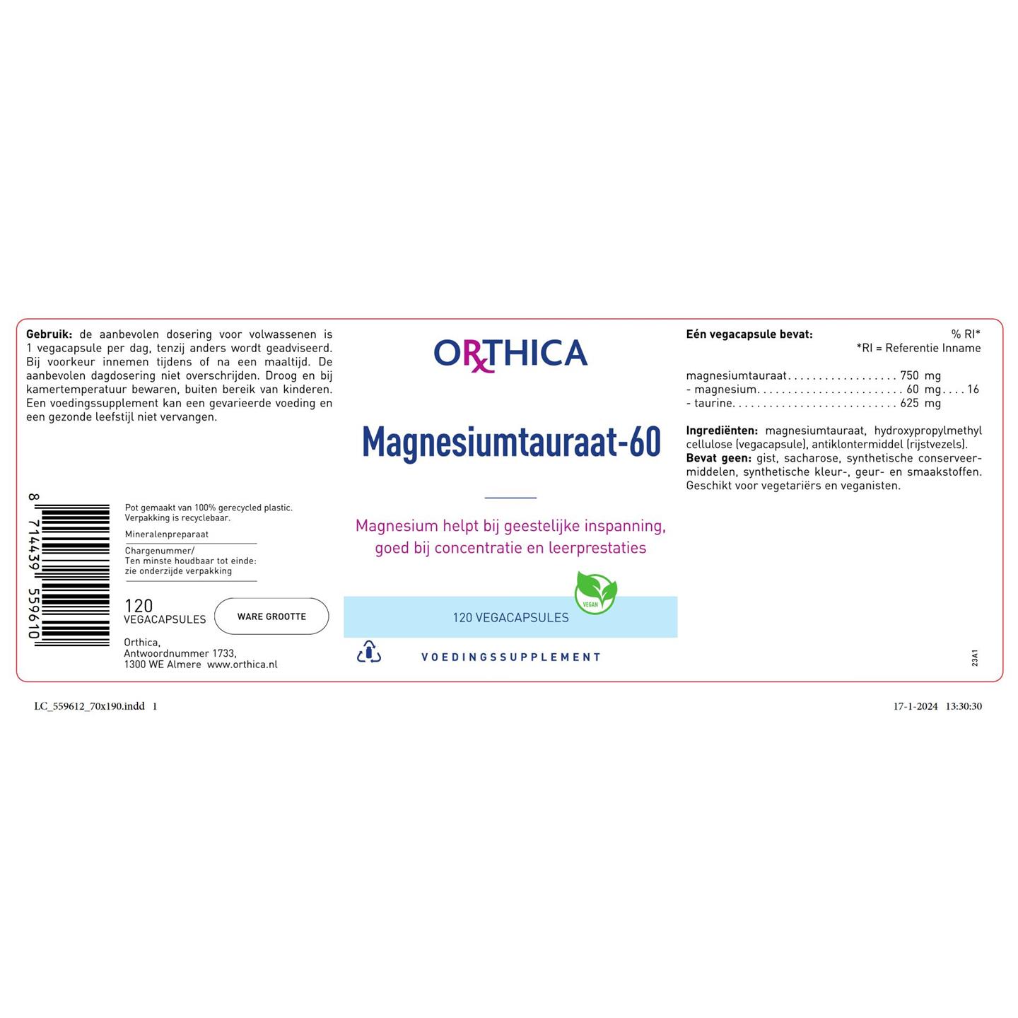 Magnesiumtauraat, Veganistische capsule (Hydroxypropylmethylcellulose), Antiklontermiddel (Rijstvezels).
