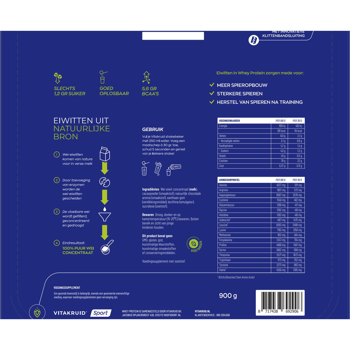 VitaKruid Whey Protein Concentrate chocolade 900 gram