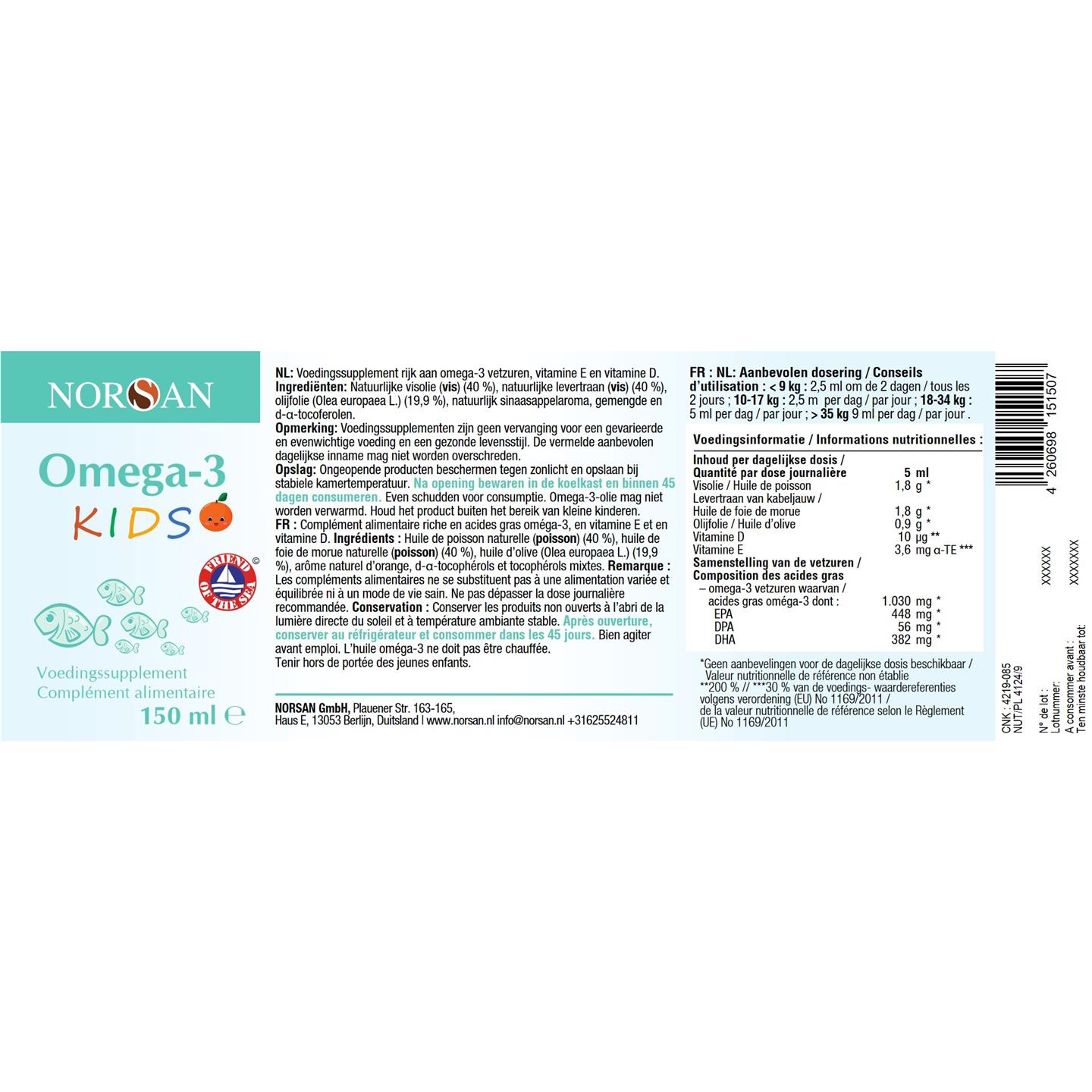 Natuurlijke visolie (40%) (Vis), Natuurlijke levertraan (40%) (Vis), Olijfolie (Olea europea L.) (19,9%), Natuurlijk sinaasappelaroma, Gemengde en d-ɑ-tocoferolen.