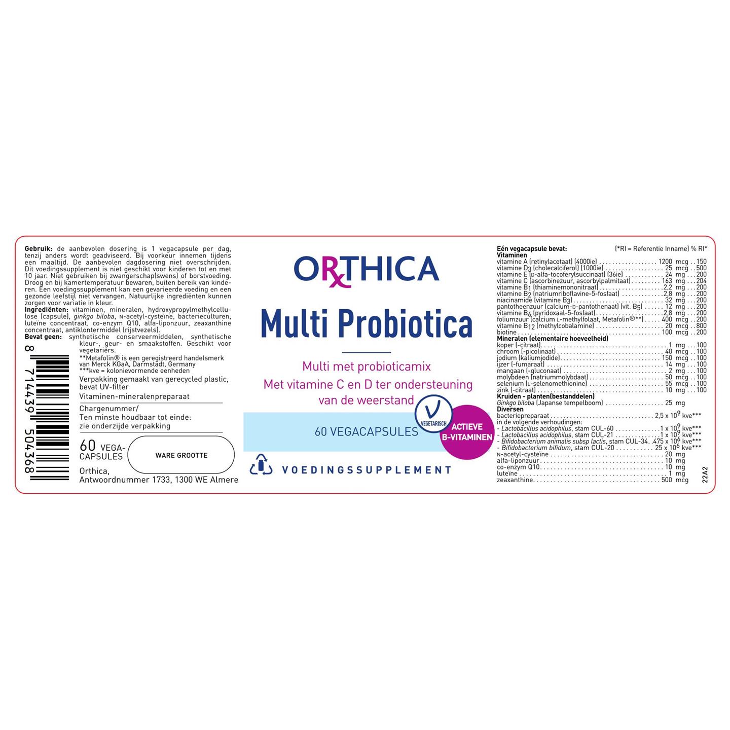 Vitaminen, Mineralen, Capsule (Hydroxypropylmethylcellulose), Japanse tempelboom (Ginkgo biloba), N-Acetyl-Cysteïne, Bacterieculturen, Luteïne concentraat, Co-enzym Q10, Alfa-Liponzuur, Zeaxanthine concentraat, Antiklontermiddel (Rijstvezels).