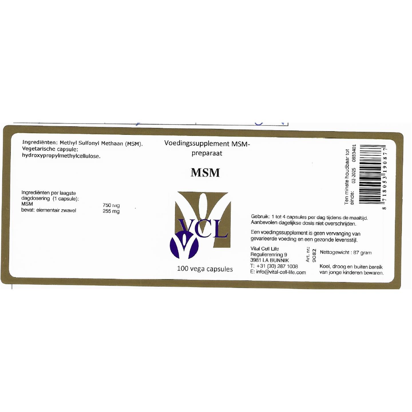 Methyl Sulfonyl Methaan (MSM), Vegetarische capsule (Hydroxypropylmethylcellulose).
