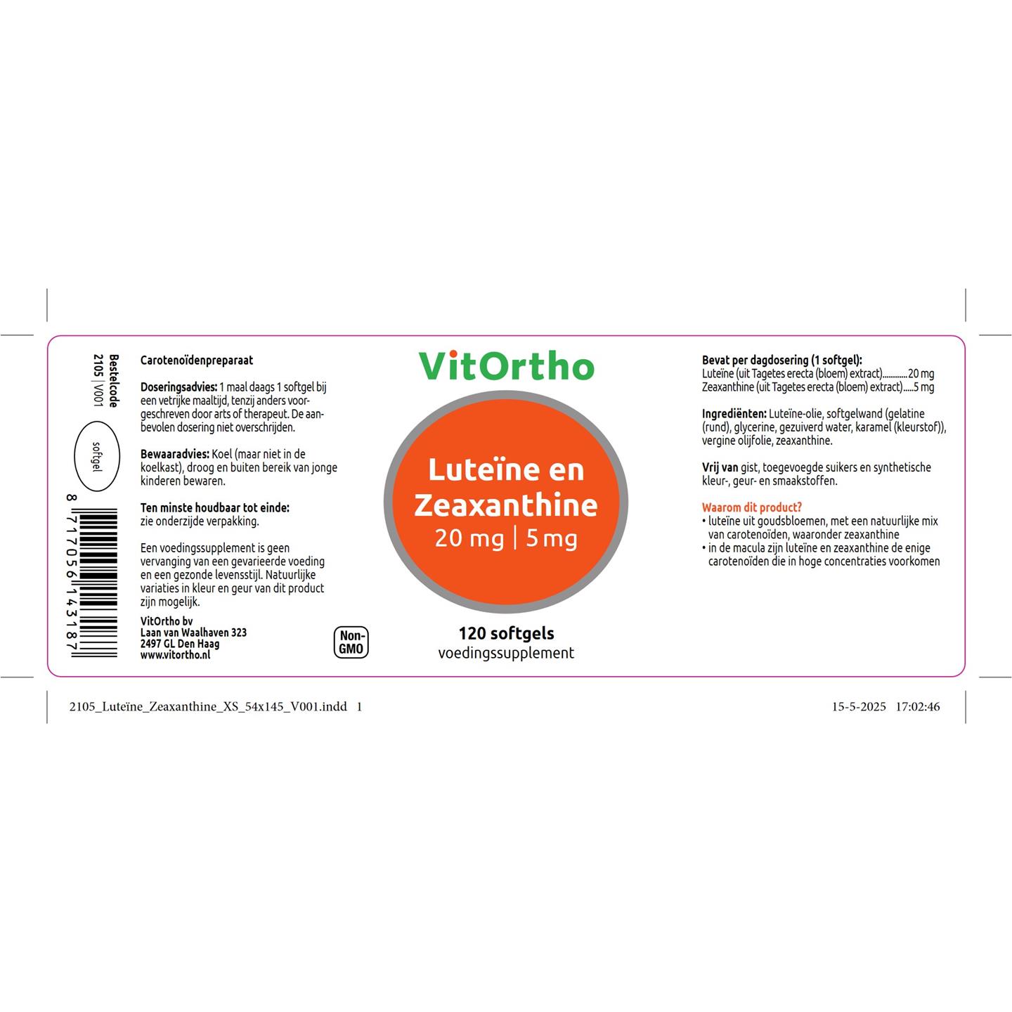 VitOrtho Luteïne 20 mg en Zeaxanthine 5 mg 120 softgels