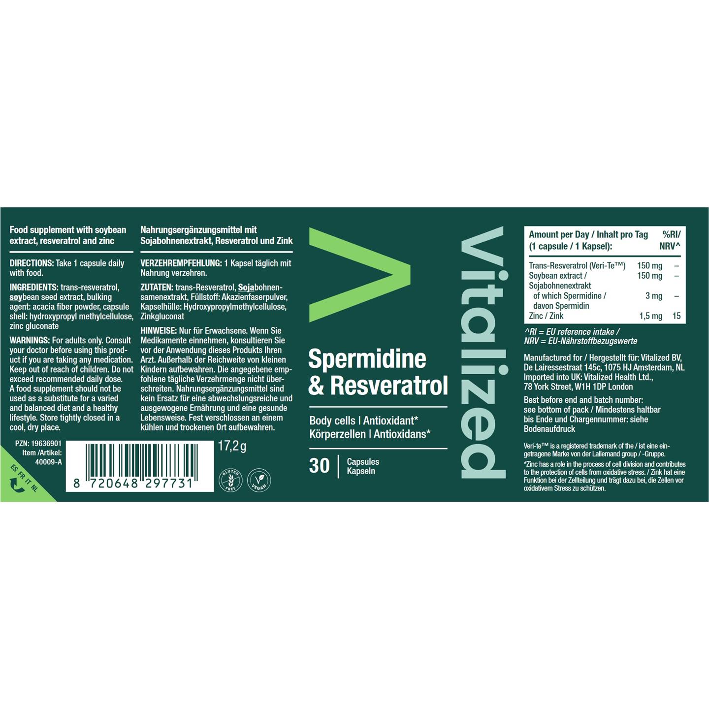 Trans-resveratrol, Sojabonenzaadextract (Soja), Vulstof (Acaciavezelpoeder), Capsulehuls (Hydroxypropylmethylcellulose), Zinkgluconaat.