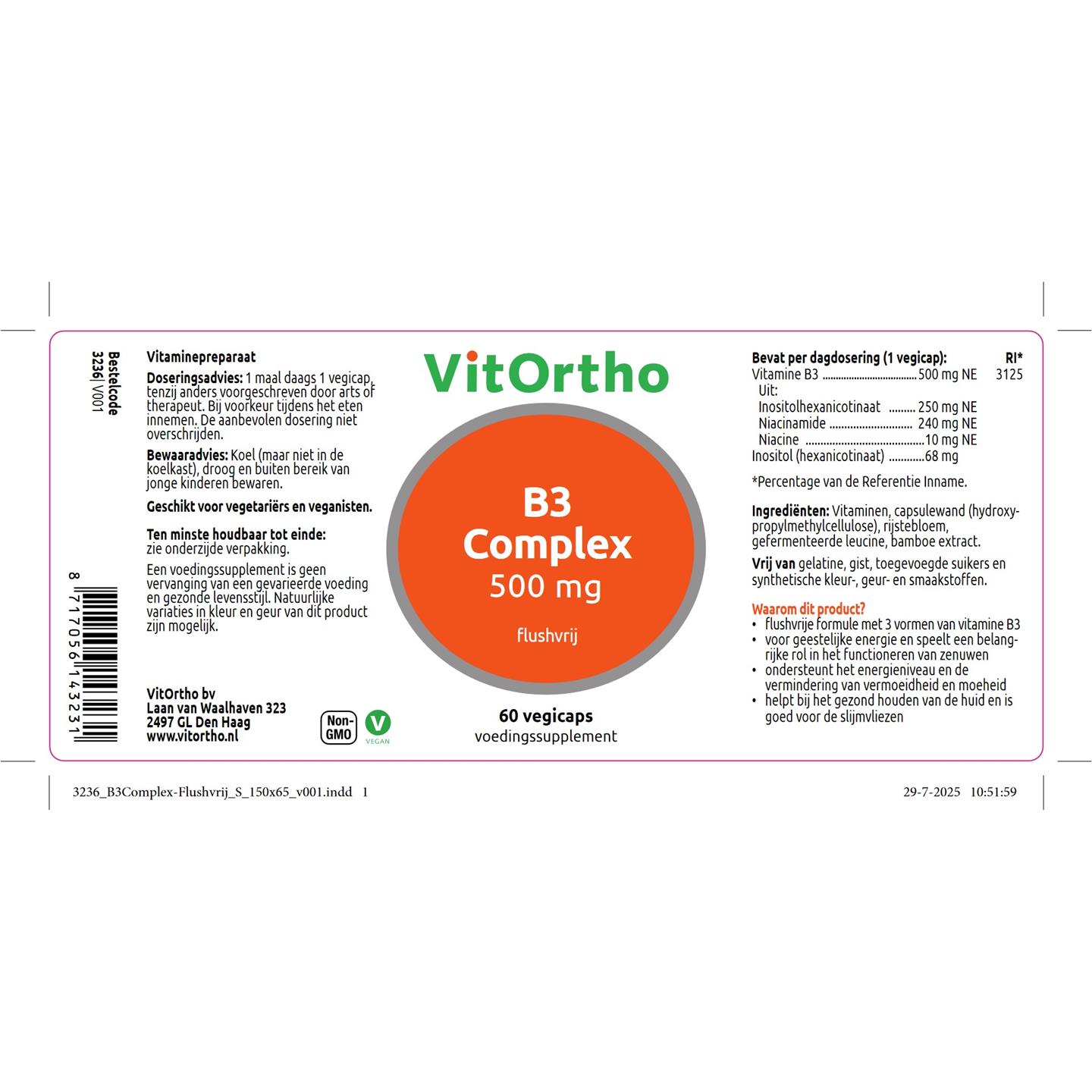 VitOrtho B3 complex 500 mg flushvrij 60 vcaps