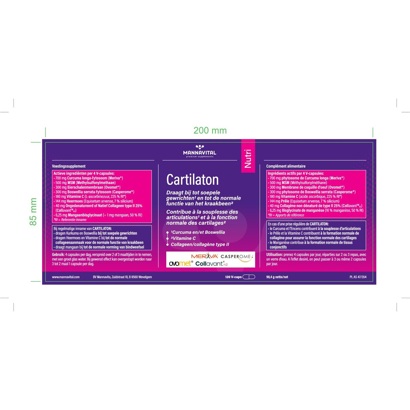 Curcuma longa-fytosoom (Kurkuma), Methylsulfonylmethaan, Capsulewand (Hydroxypropylmethylcellulose), Stabilisator (Microkristallijne cellulose), Boswellia serratafytosoom (Wierookboom), Eierschalenmembraan (Eieren), Antiklontermiddel (Siliciumdioxide), Vitamine C 97%, Equisetum arvense, Emulgator (Magnesiumstearaat), Ongedenatureerd collageen type 2, Mangaanbisglycinaat.
