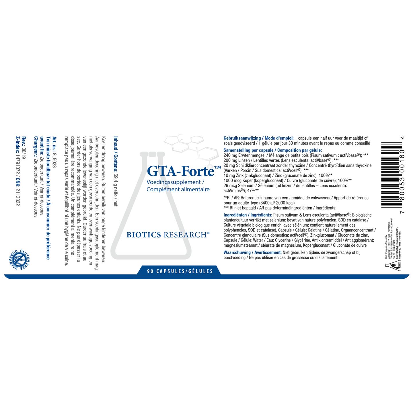 Erwtenmengsel (Pisum sativum: actiVbase®), Linzen (Lens esculenta: actiVbase®), Capsule (Gelatine), Schildklierconcentraat zonder thyroxine (Varken: actiVcell®), Zinkgluconaat, Capsule (Water, Glycerine), Antiklontermiddel (Magnesiumstearaat), Kopergluconaat.