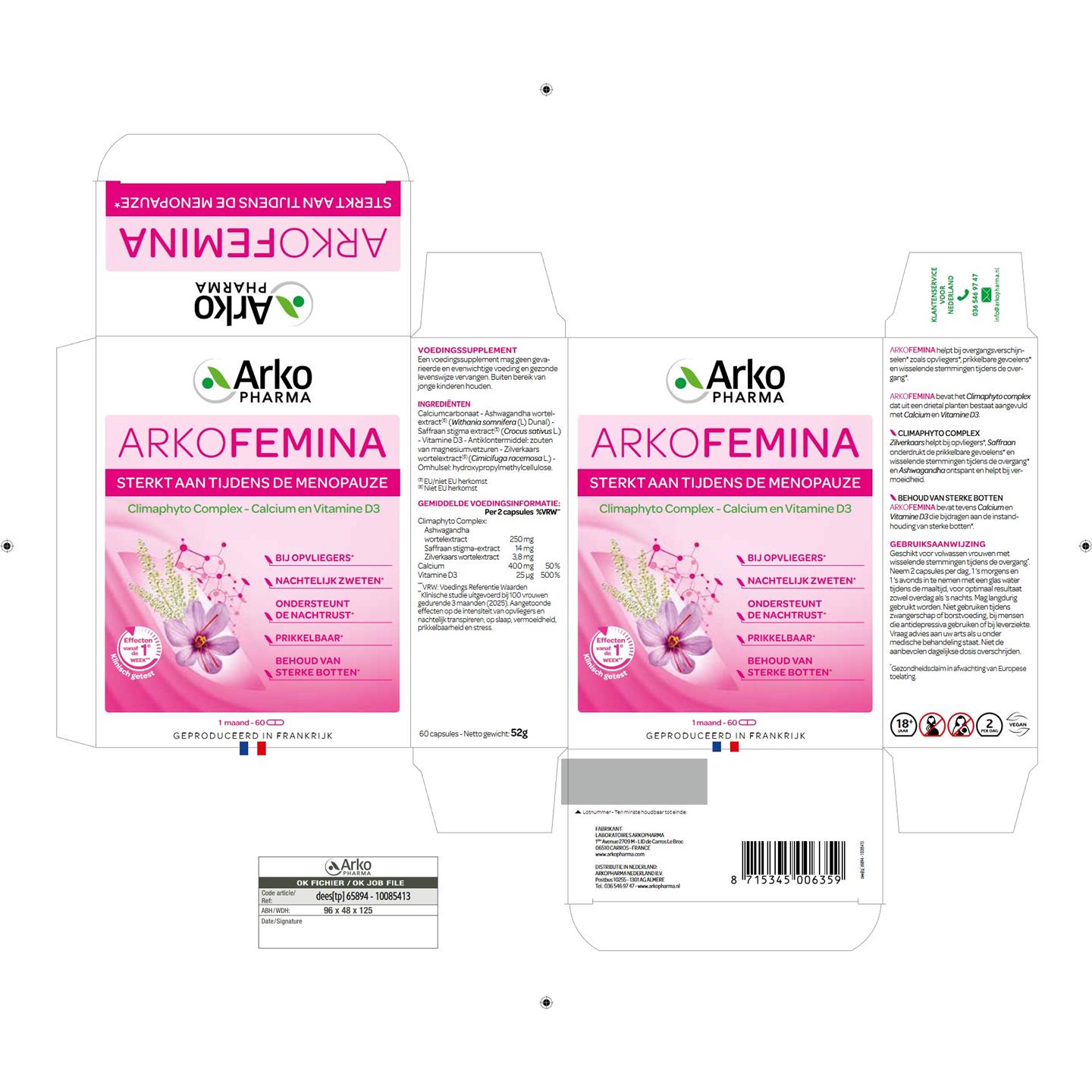 Calciumcarbonaat, Ashwagandha wortelextract (Withania somnifera (L) Dunal), Saffraan stigma extract (Crocus sativus L.), Vitamine D3, Antiklontermiddel (Zouten van magnesiumvetzuren), Zilverkaars wortelextract (Cimicifuga racemosa L.), Omhulsel (Hydroxypropylmethylcellulose).