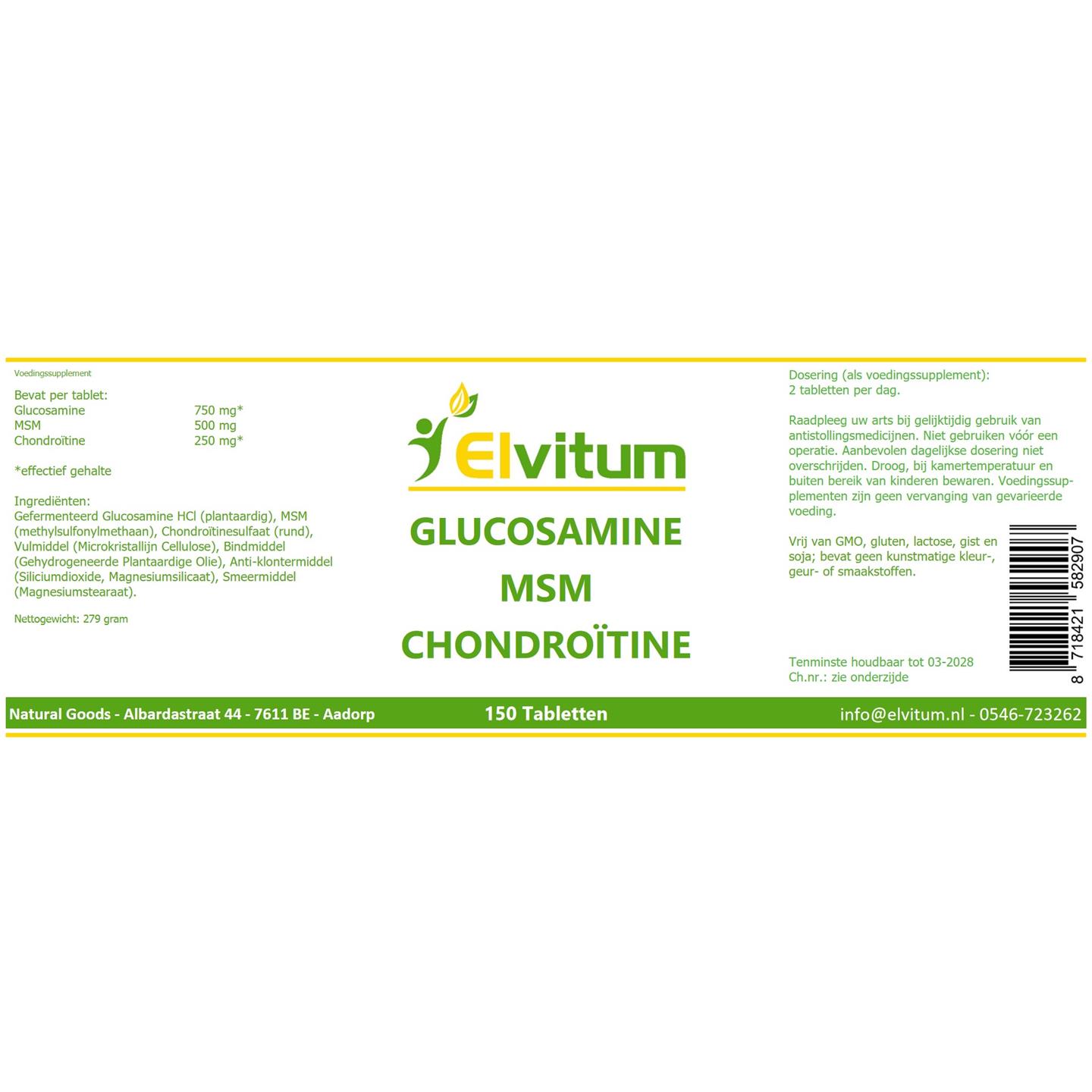 Elvitum Glucosamine MSM Chondroïtine 150 tab