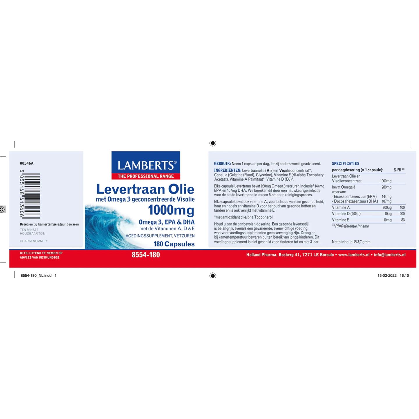Lamberts Levertraan Olie 1000 mg 180 caps
