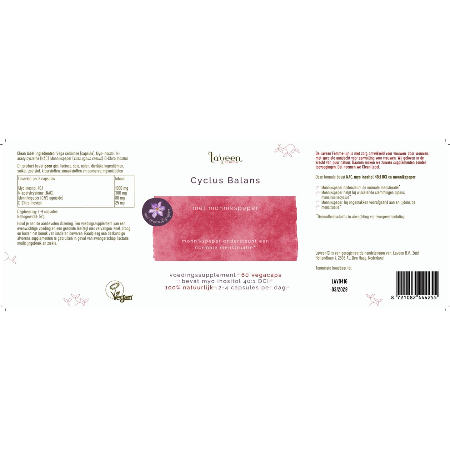 Vega cellulose (Capsule), Myo-inositol, N-Acetylcysteïne (NAC), Monnikspeper (Vitex agnus castus), D-Chiro Inositol.
