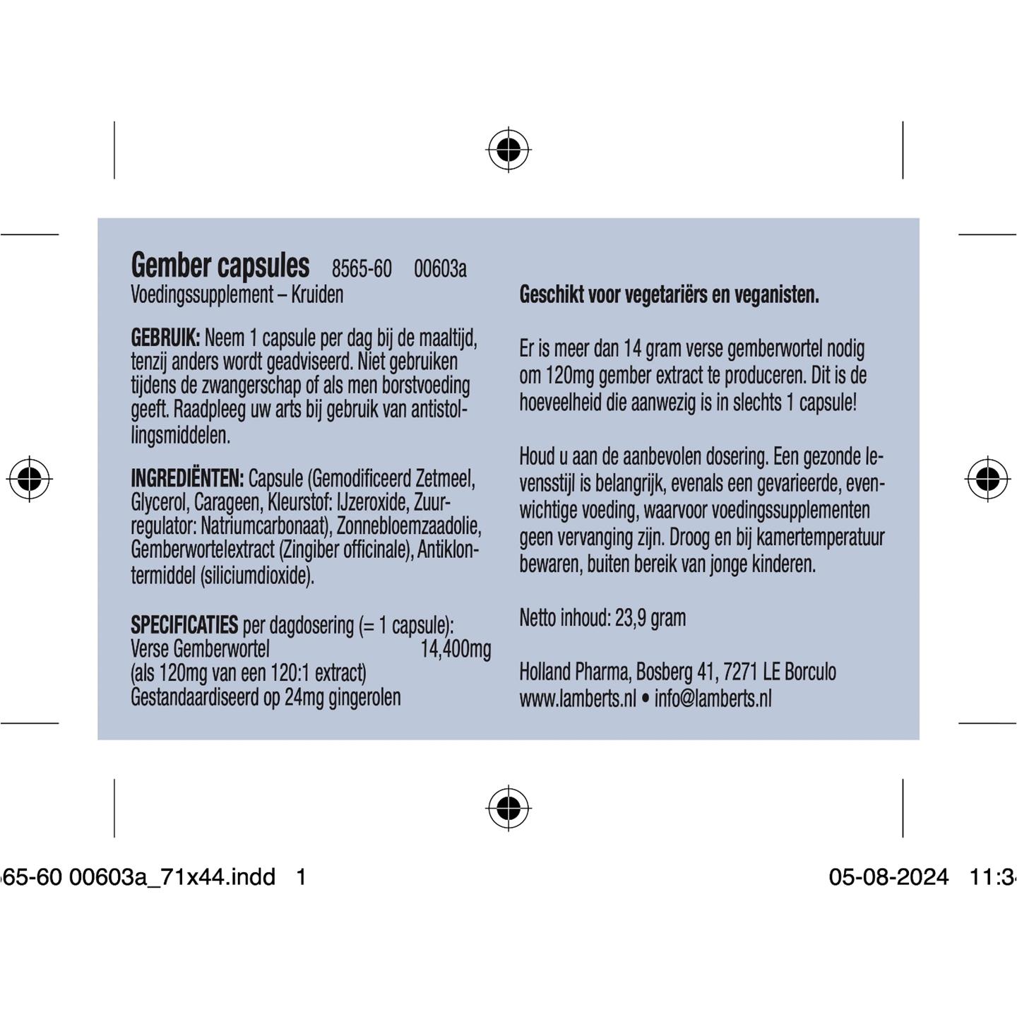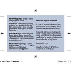 Capsule (Gemodificeerd zetmeel, Glycerol, Carrageen, Kleurstof: IJzeroxide, Zuurregulator: Natriumcarbonaat), Zonnebloemzaadolie, Gemberwortelextract (Zingiber officinale), Antiklontermiddel (Siliciumdioxide).