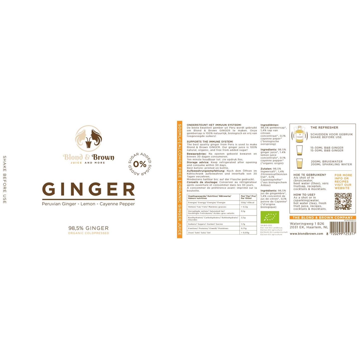 Schudden voor gebruik. 15-30 milliliter B&B Ginger. 200 milliliter (bruis)water
