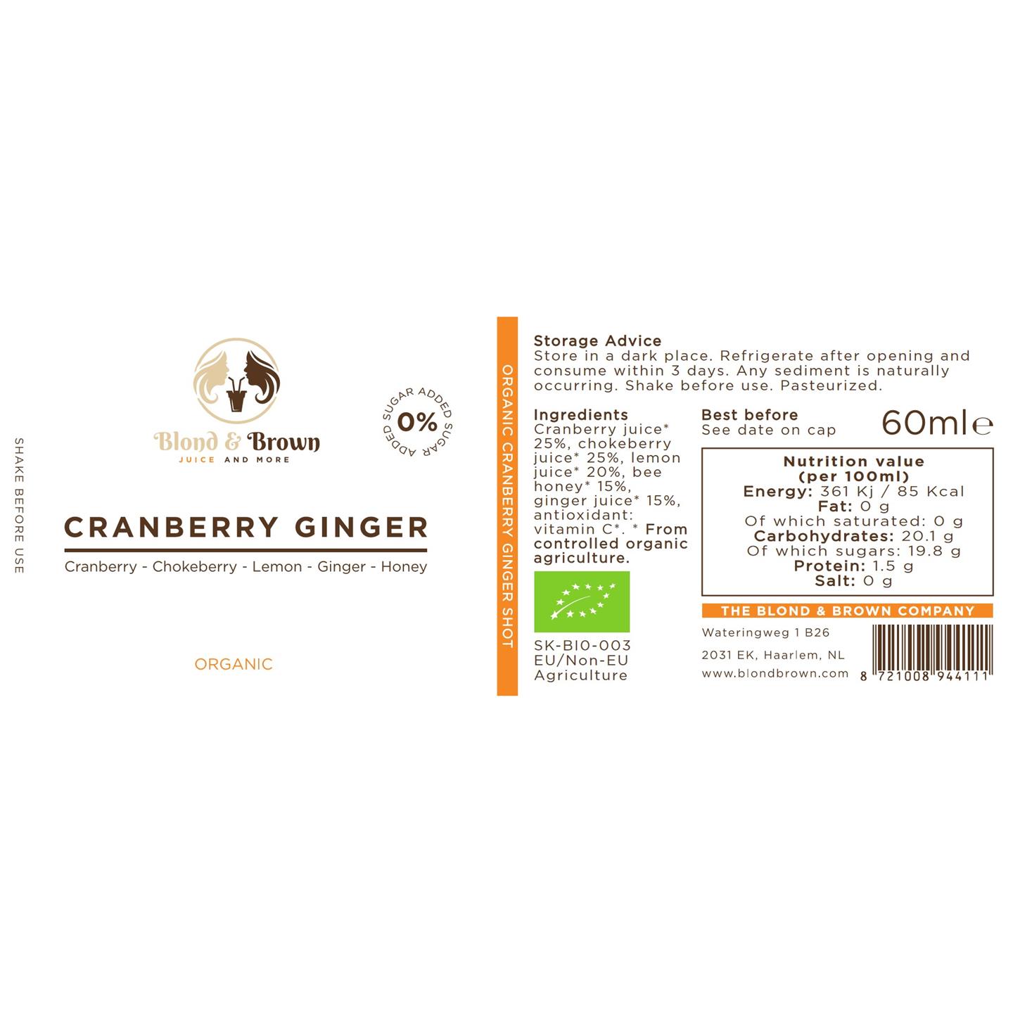 Blond & Brown Cranberry Ginger BIO Shot 6 pack 360 ml
