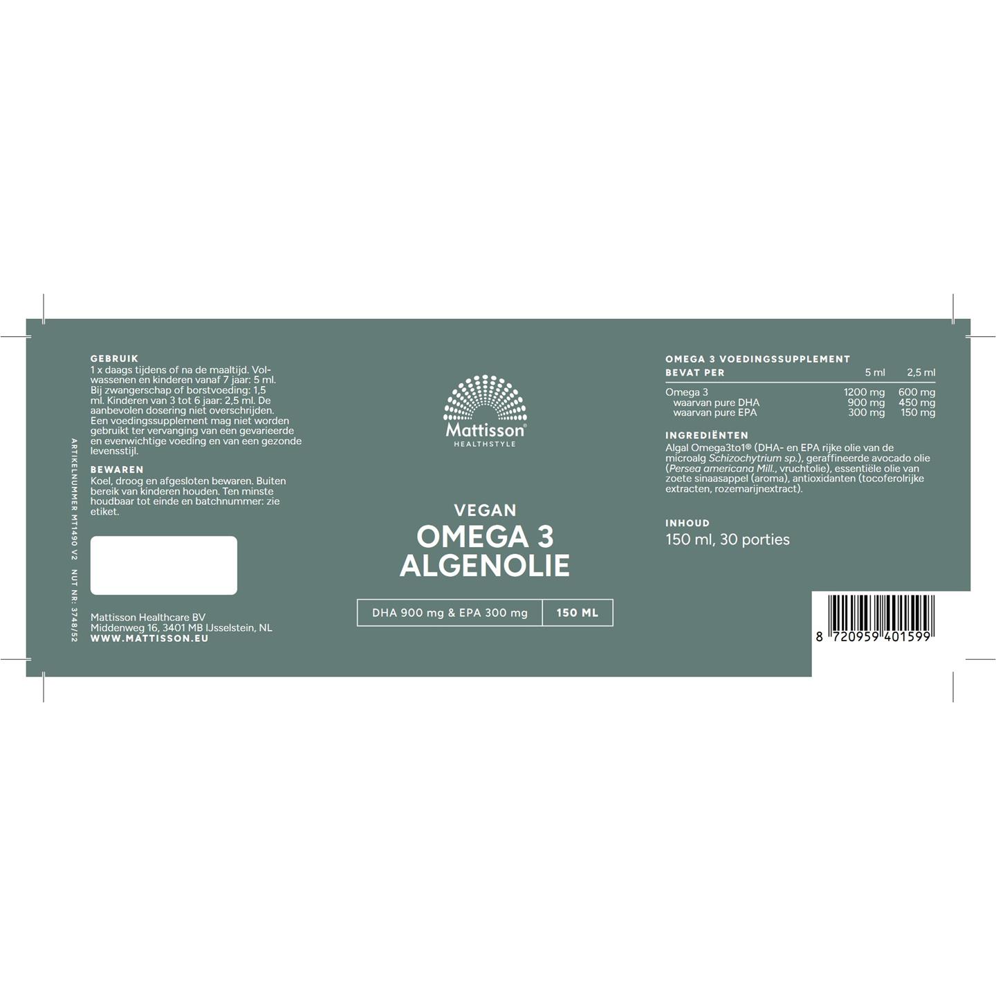 Mattisson Vegan Omega 3 Algenolie 150 ml