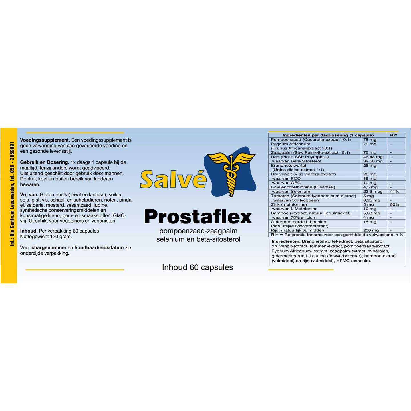 Brandnetelwortel-extract, Beta sitosterol, Druivenpit-extract, Tomaten-extract, Pompoenzaad-extract, Pygeum africanum-extract, Zaagpalm-extract, Mineralen, Gefermenteerde L-Leucine (Flowverbeteraar), Bamboe-extract (Vulmiddel), HPMC (Capsule).