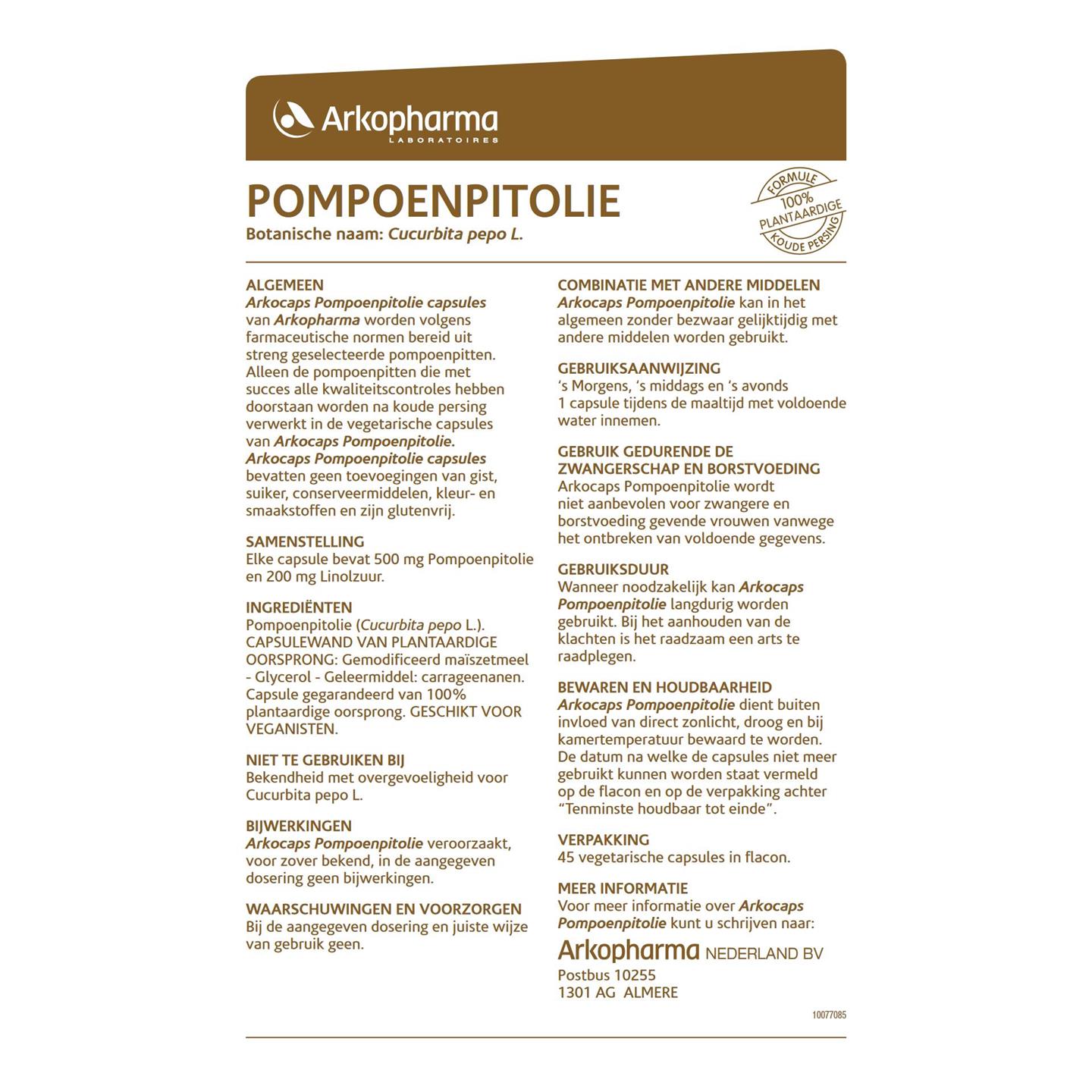 Pompoen (Cucurbita pepo) pit olie, Plantaardige capsule (Gemodificeerd maïszetmeel, Glycerol), Geleermiddel (Carrageenanen).