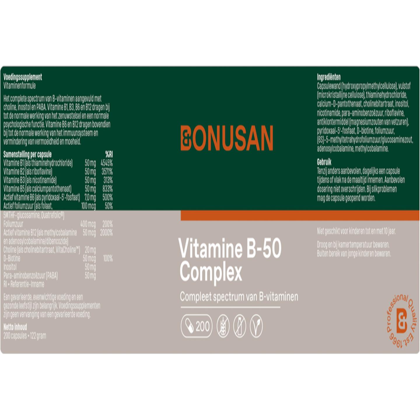 Capsulewand (Hydroxypropylmethylcellulose), Vulstof (Microkristallijne cellulose), Thiaminehydrochloride, Calcium-d-pantothenaat, Cholinebitartraat, Inositol, Nicotinamide, Para-aminobenzoëzuur, Riboflavine, Antiklontermiddel (Magnesiumzouten van vetzuren), Pyridoxaal-5-fosfaat, D-Biotine, Foliumzuur, (6S)-5-methyltetrahydrofoliumzuur/glucosaminezout, Adenosylcobalamine, Methylcobalamine.