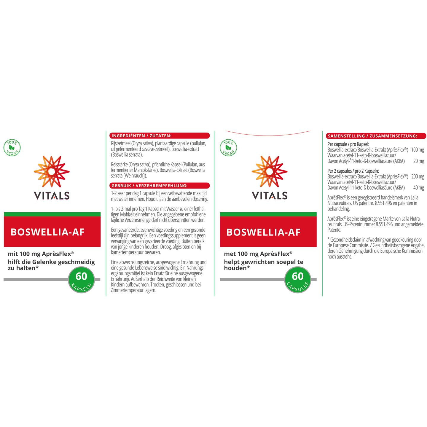 Rijstzetmeel (Oryza sativa), Plantaardige capsule (Pullulan, uit gefermenteerd cassave-zetmeel), Boswellia-extract (Boswellia serrata).