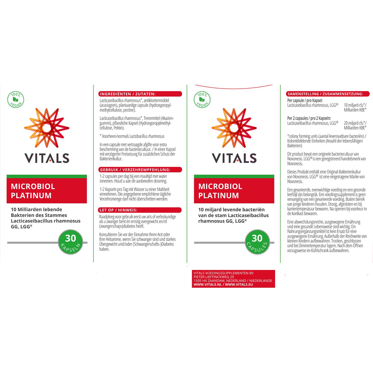 Lacticaseibacillus rhamnosus, Antiklontermiddel (Acaciagom), Plantaardige capsule (Hydroxypropylmethylcellulose, Pectine).