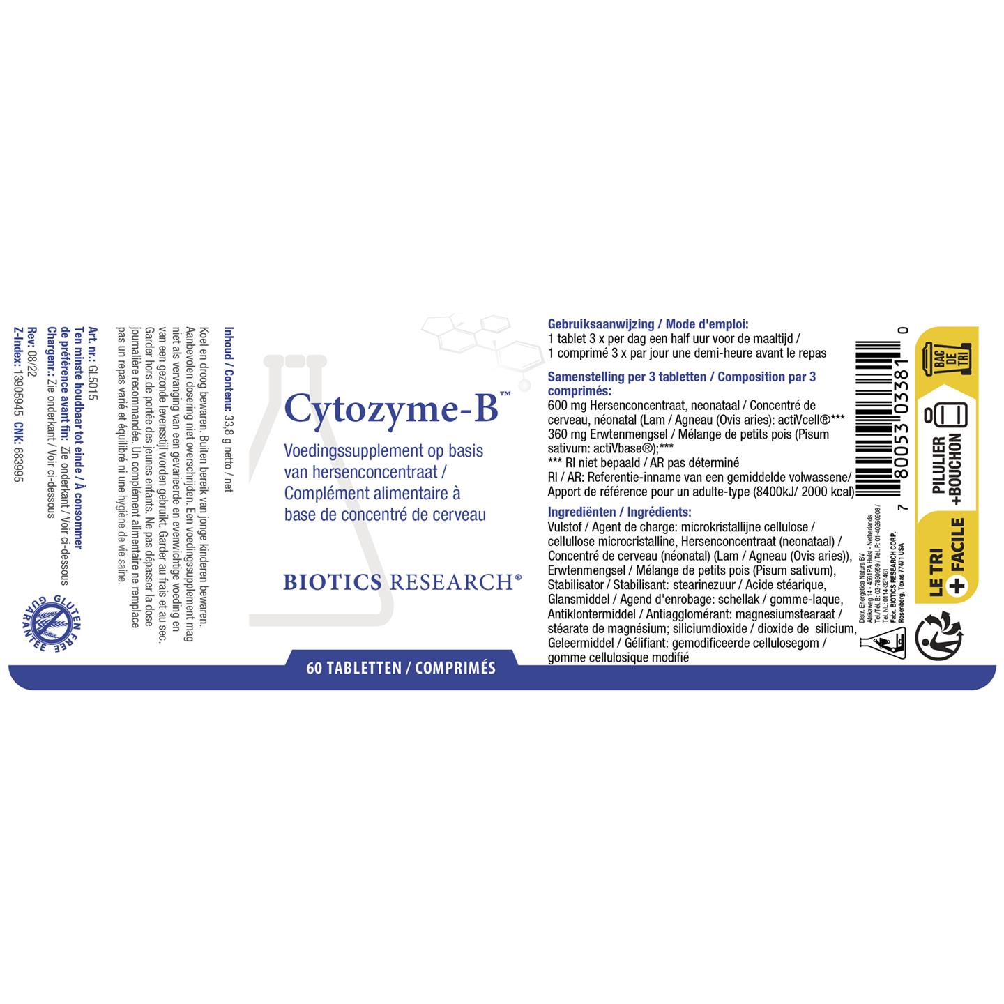 Vulstof (Microkristallijne cellulose), Hersenconcentraat (neonataal) (lam (Ovis aries)), Erwtenmengsel (Pisum sativum), Stabilisator (Stearinezuur), Glansmiddel (Schellak), Antiklontermiddel (Magnesiumstearaat, Siliciumdioxide), Geleermiddel (Gemodificeerd cellulosegom).