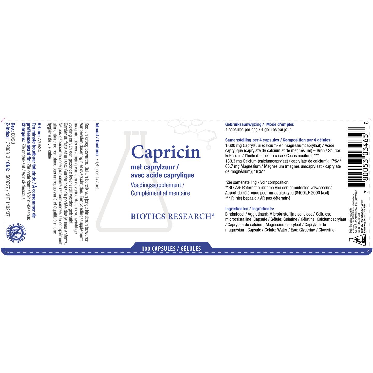 Bindmiddel (Microkristallijne cellulose), Capsule (Gelatine), Calcium caprylaat, Magnesium caprylaat, Capsule (Water, Glycerine).
