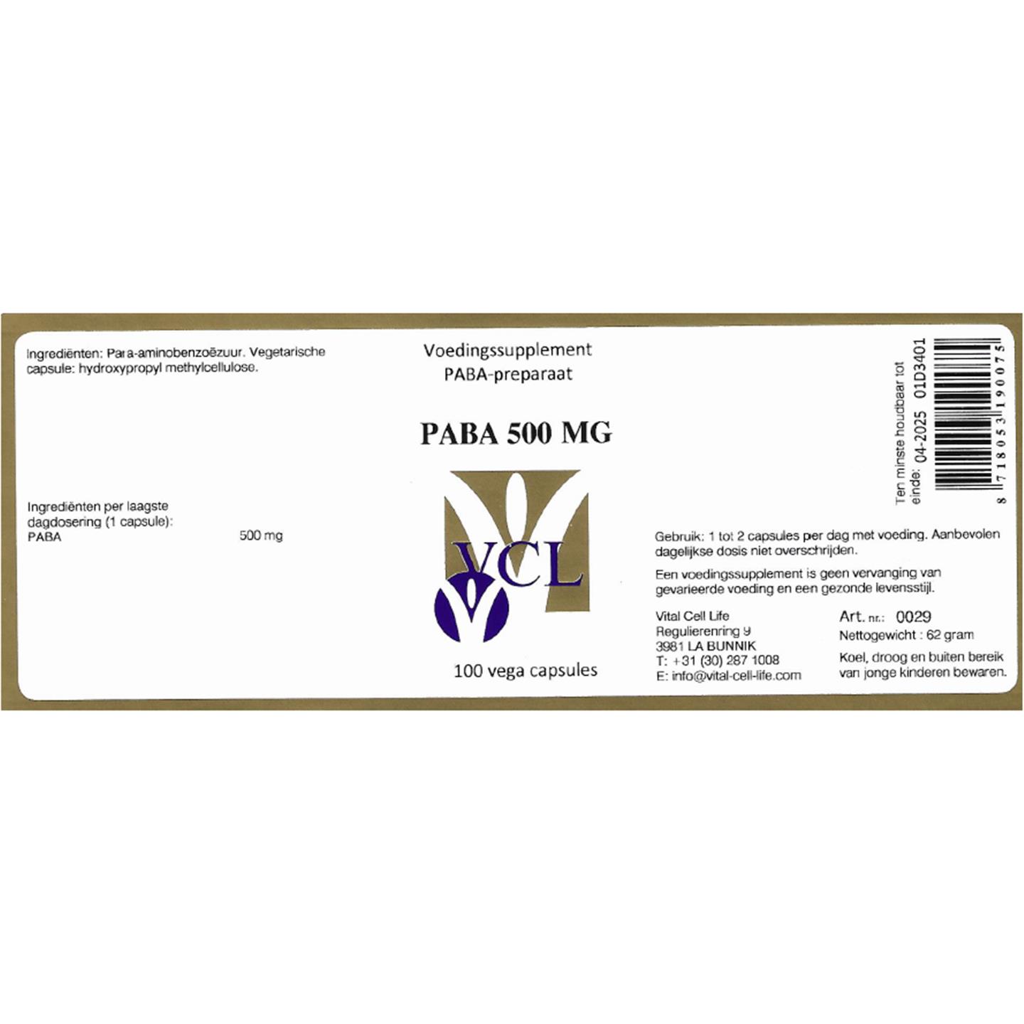VCL/ Vital Cell Life PABA 500 mg 100 vcaps