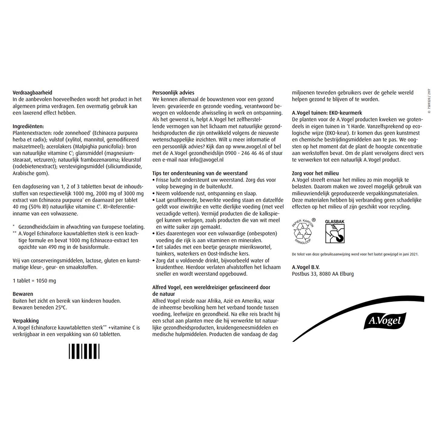 Plantenextracten: Rode zonnehoed (Echinacea purpurea herba et radix), Vulstof (Xylitol, Mannitol, Gemodificeerd maïszetmeel), Acerola kers (Malpighia punicifolia): (Bron van natuurlijke vitamine C), Glansmiddel (Magnesiumstearaat, Vetzuren), Natuurlijk Framboosaroma, Kleurstof (Rodebietenextract), Verstevigingsmiddel (Siliciumdioxide, Arabische gom).