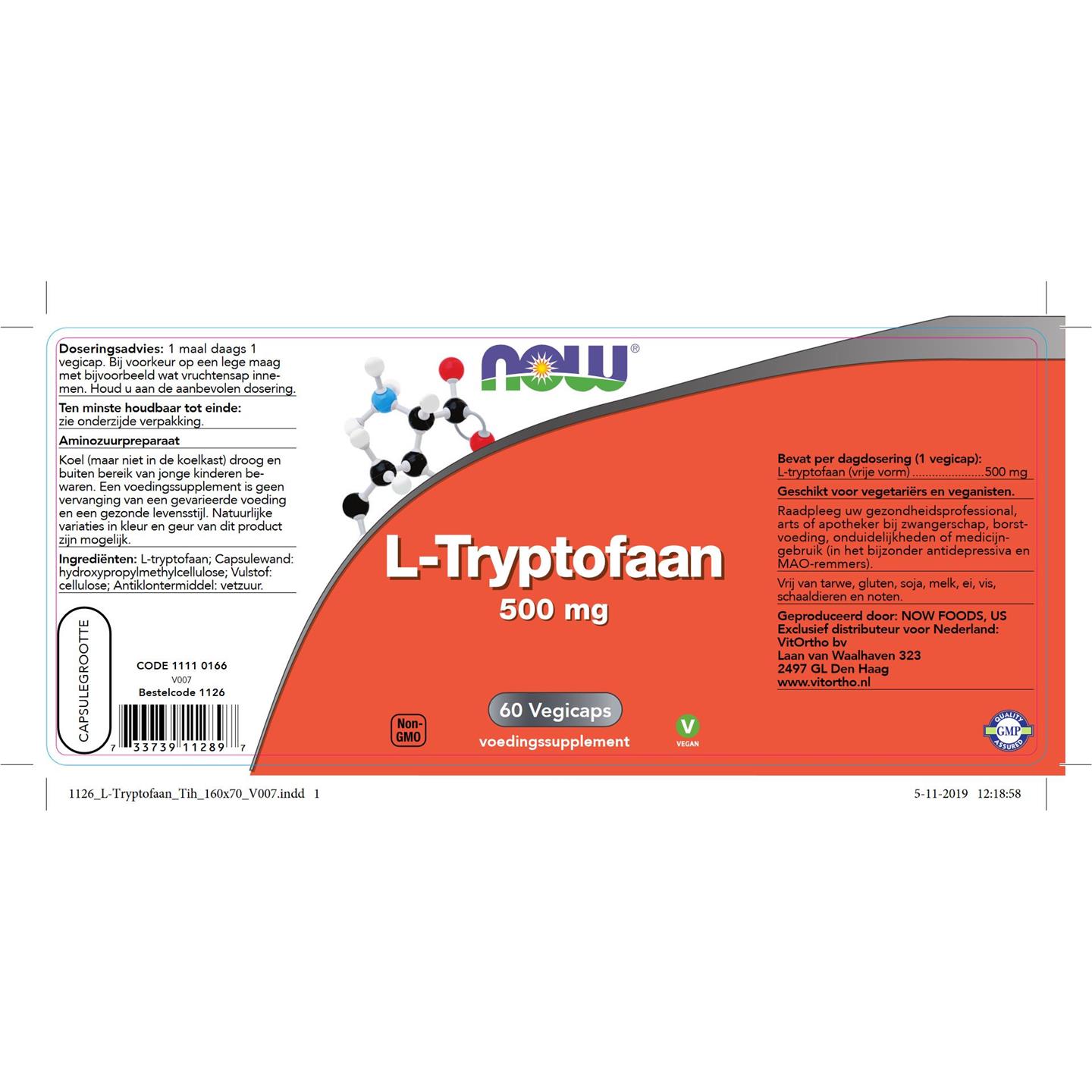 NOW L-Tryptofaan 500 mg 60 vcaps
