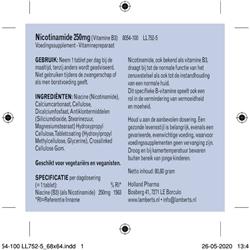 Vitamine B3 (niacine, nicotinamide), Calciumcarbonaat, Cellulose, Dicalciumfosfaat, Antiklontermiddelen (Siliciumdioxide, Stearinezuur, Magnesiumstearaat), Hydroxypropylcellulose, Tabletcoating (Hydroxypropylmethylcellulose, Glycerine), Crosslinked cellulose gom.