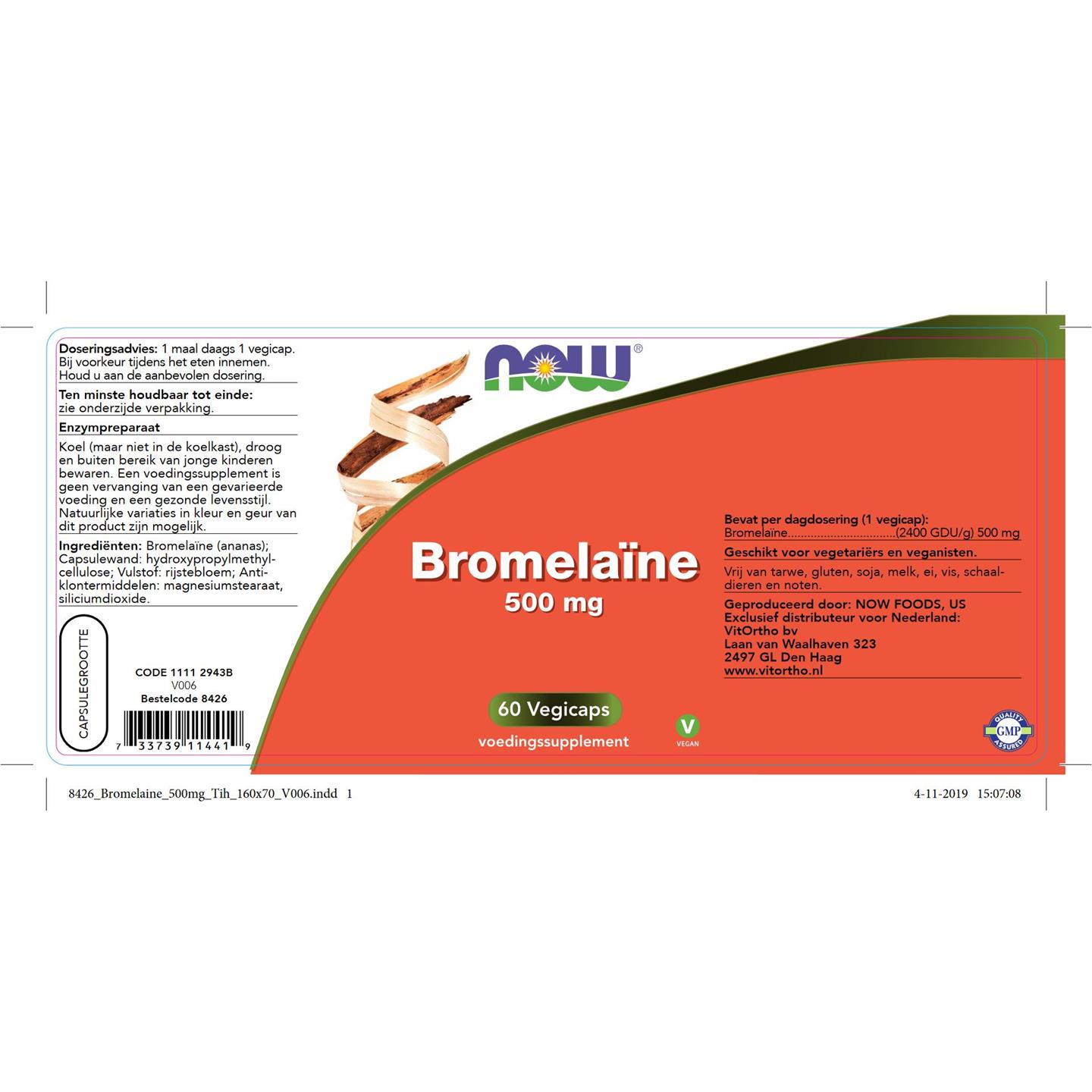 Bromelaïne (Ananas), Capsule (Hydroxypropylmethylcellulose), Vulstof (Rijstebloem), Antiklontermiddel (Magnesiumstearaat, Siliciumdioxide).