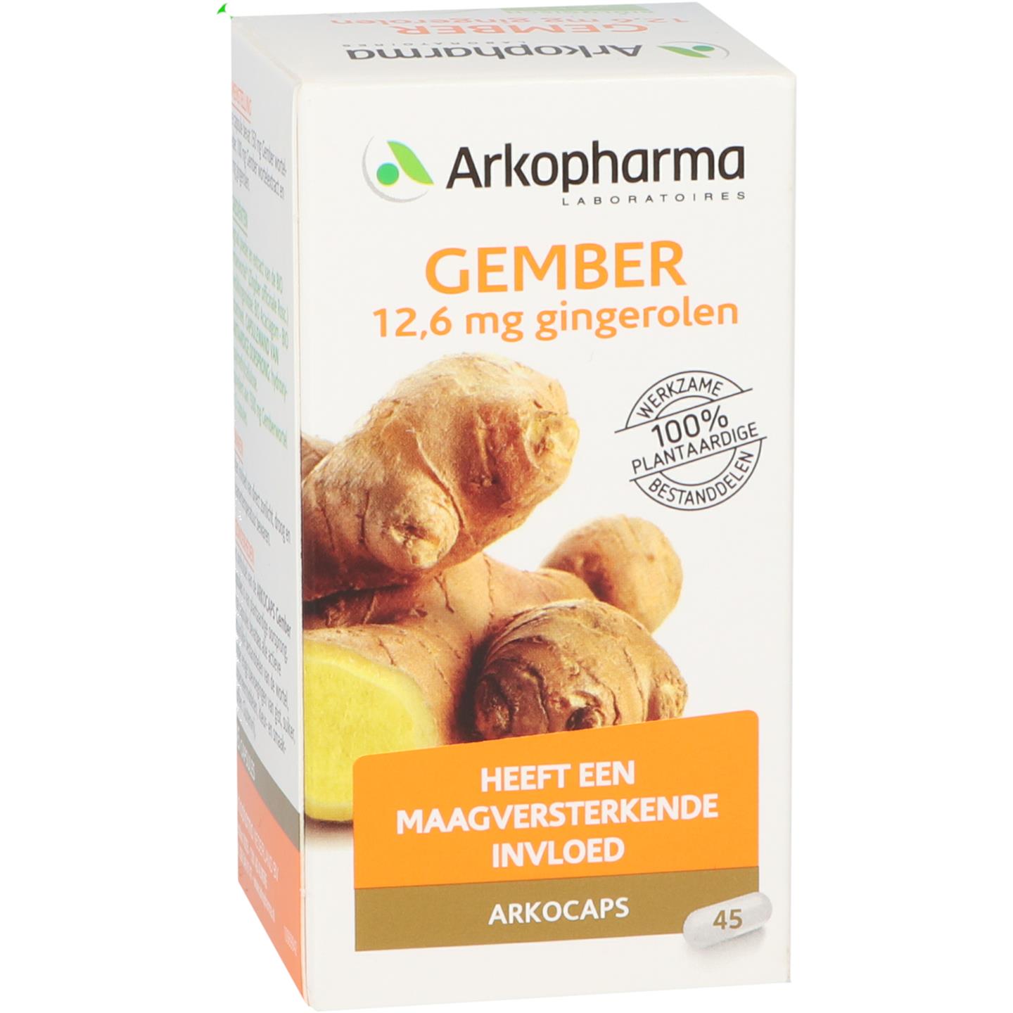 Integraal poeder en extract van de Gemberwortel* (Zingiber officinale Rosc.), Verdikkingsmiddelen (Acaciagom), Rijstzetmeel, Capsulewand van plantaardige oorsprong (Hydroxypropylmethylcellulose).