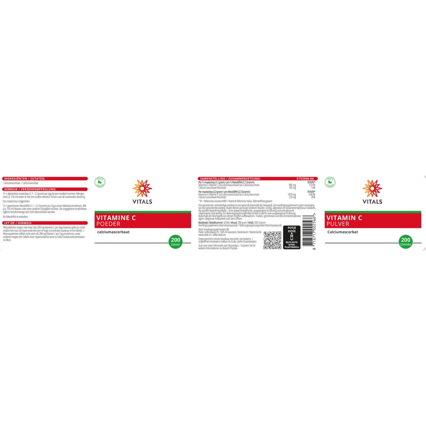 Vitals Vitamine C poeder (calciumascorbaat) 200 gram