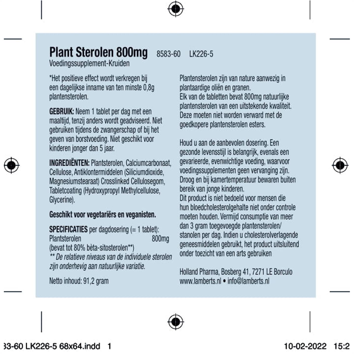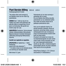 Plantensterolen, Calciumcarbonaat, Cellulose, Antiklontermiddelen (Siliciumdioxide, Magnesiumstearaat), Cross-linked cellulosegom, Tabletcoating (Hydroxypropylmethylcellulose, Glycerine).