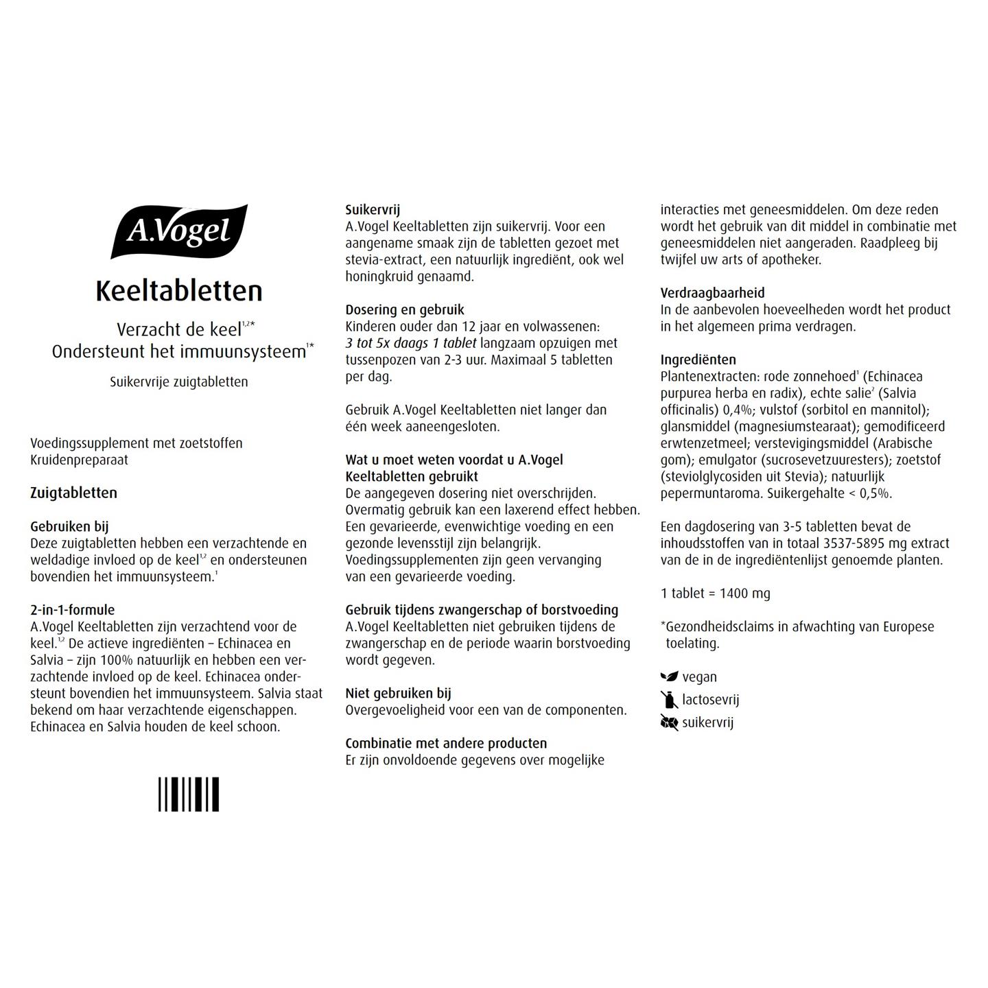 Plantenextracten: Rode zonnehoed (Echinacea purpurea herba en radix), Echte salie (Salvia officinalis) 0,4%, Vulstof (Sorbitol, Mannitol), Glansmiddel (Magnesiumstearaat), Gemodificeerd erwtenzetmeel, Verstevigingsmiddel (Arabische gom), Emulgator (Sucrosevetzuuresters), Zoetstof (Steviolglycosiden uit stevia), Natuurlijke pepermuntaroma.