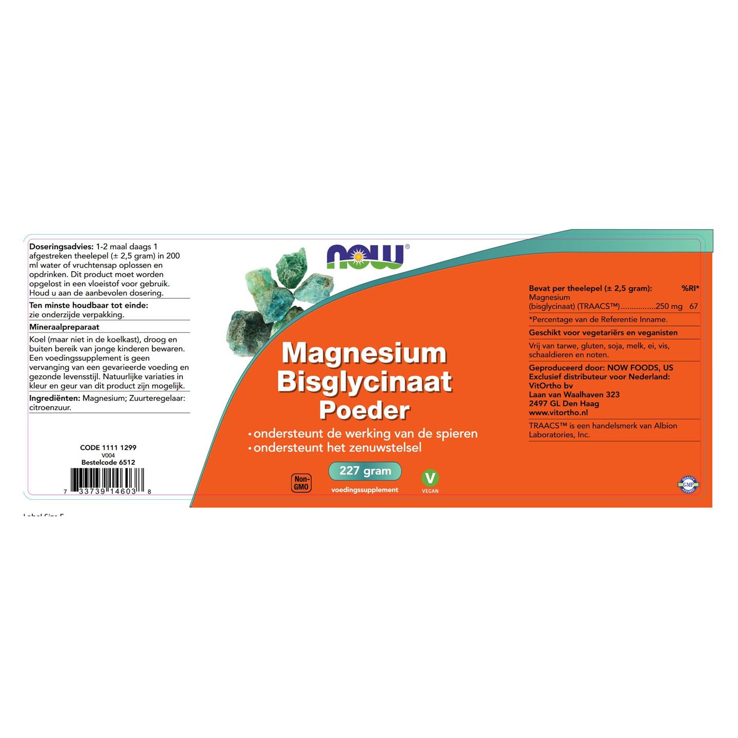 NOW Magnesium Bisglycinaat poeder 227 gram