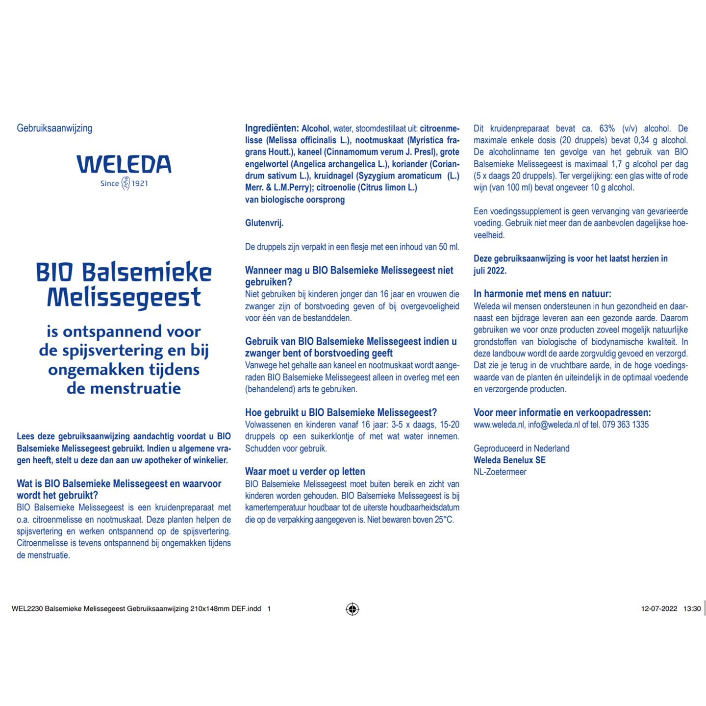 Alcohol, Water, Stoomdestilaat uit (Citroenmelisse (Melissa officinalis L.), Nootmuskaat (Myristica fragrans Houtt.), Kaneel (Cinnamomum verum J. Presl), Grote engelwortel (Angelica archangelica L.), Koriander (Coriandrum sativum L.), Kruidnagel (Syzygium aromaticum (L.) Merr. & L.M.Perry)), Citroenolie (Citrus limon L.) van biologische oorsprong.