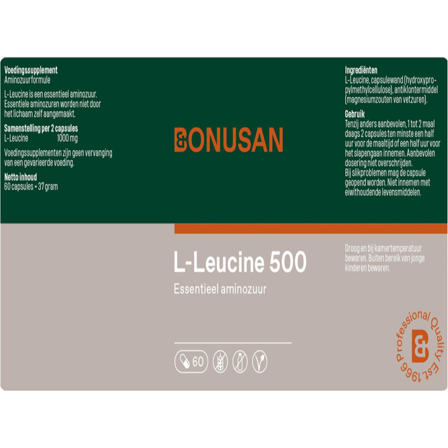 L-Leucine, Capsulewand (Hydroxypropylmethylcellulose), Antiklontermiddel (Magnesiumzouten van vetzuren).