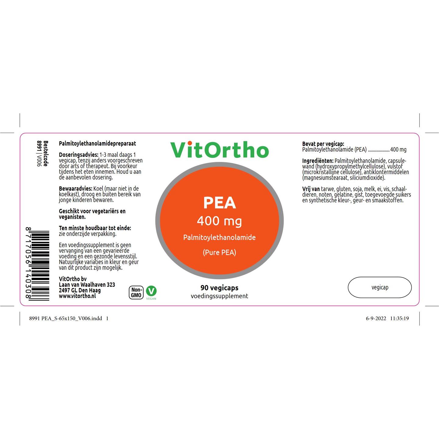 Palmitoylethanolamide (PEA), Capsule (Hydroxypropylmethylcellulose), Vulstof (Microkristallijne cellulose), Antiklontermiddelen (Magnesiumstearaat, Siliciumdioxide).