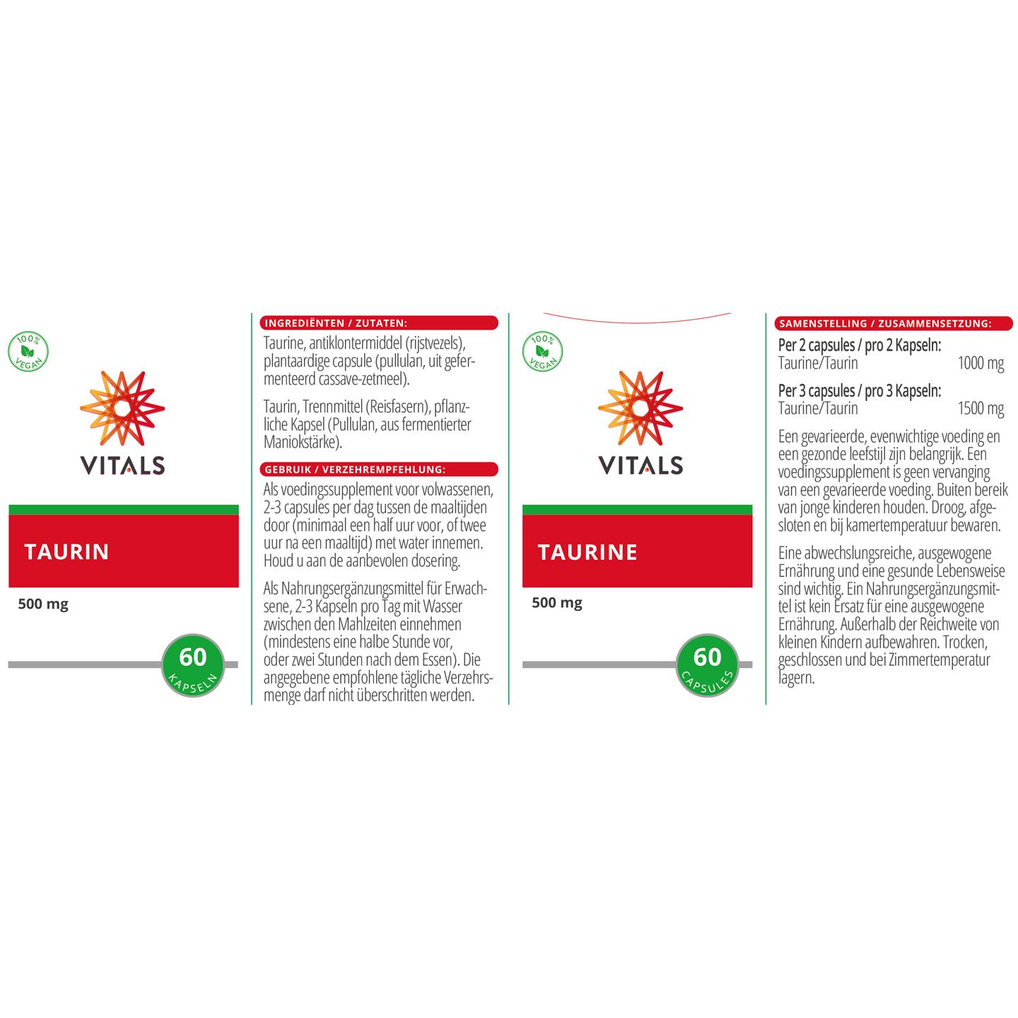 Taurine, Antiklontermiddel (Rijstvezels), Vegetarische capsule (Pullulan, uit gefermenteerd cassave-zetmeel).