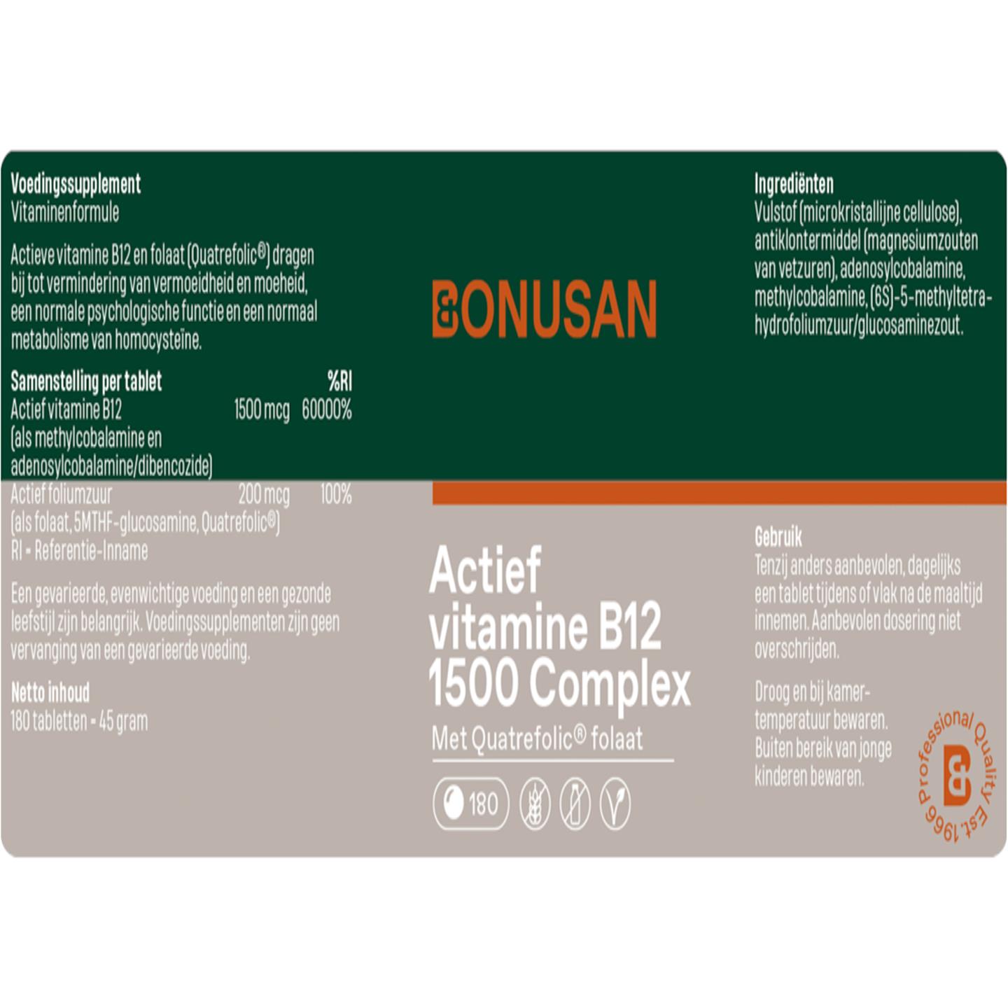 Bonusan Actief vitamine B12 1500 complex 180 tab
