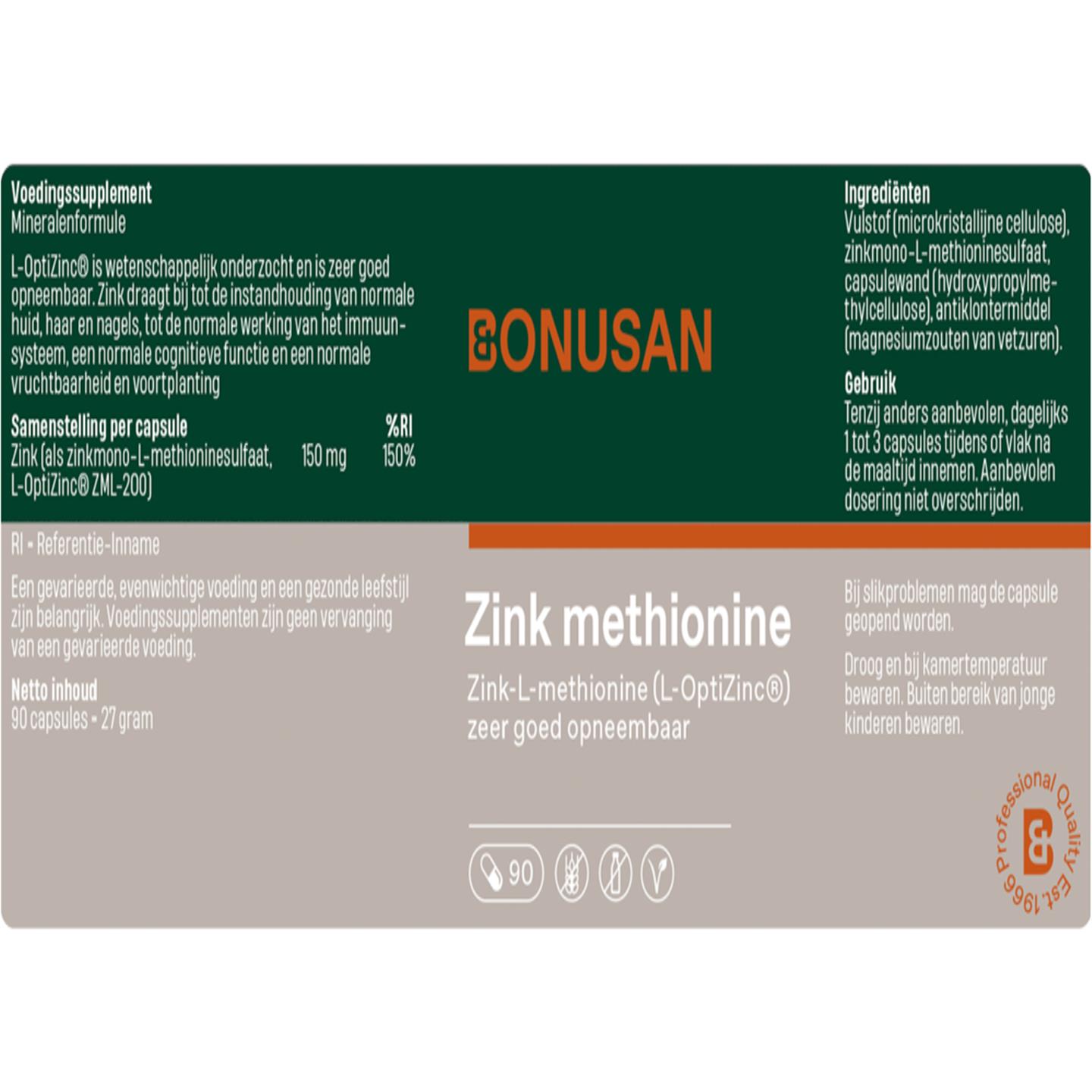 Vulstof (Microkristallijne cellulose), Zinkmono-L-methioninesulfaat, Capsulewand (Hydroxypropylmethylcellulose), Antiklontermiddel (Magnesiumzouten van vetzuren).