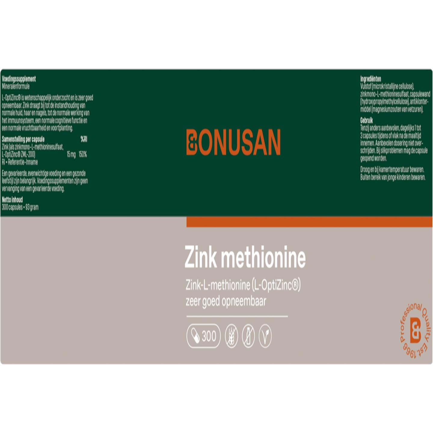Vulstof (Microkristallijne cellulose), Zinkmono-L-methioninesulfaat, Capsulewand (Hydroxypropylmethylcellulose), Antiklontermiddel (Magnesiumzouten van vetzuren).