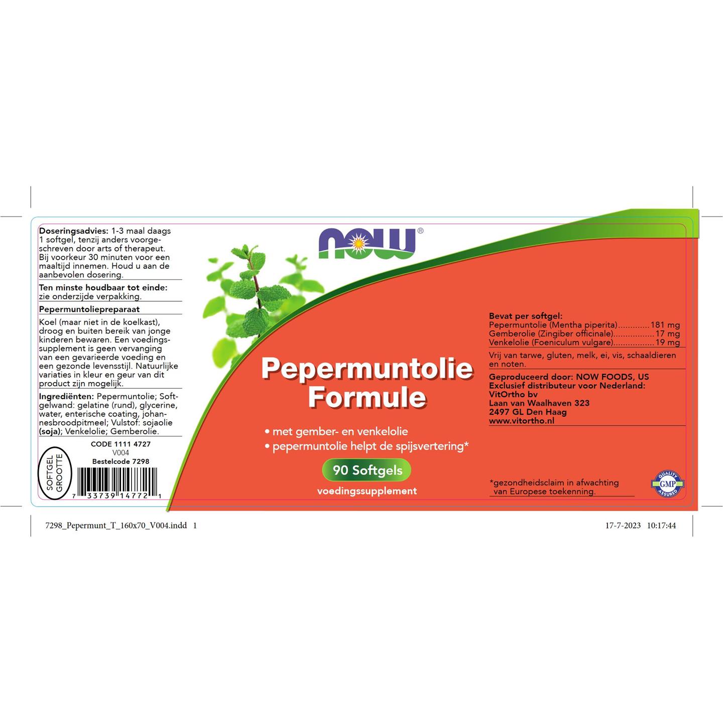NOW Pepermuntolie Formule 90 softgels