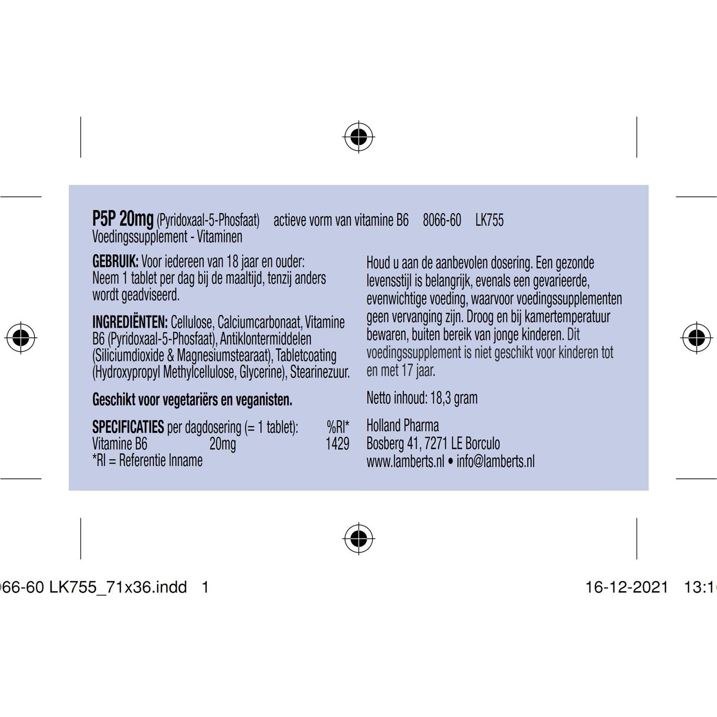 Lamberts Vitamine B6 20 mg (P5P) 60 tab