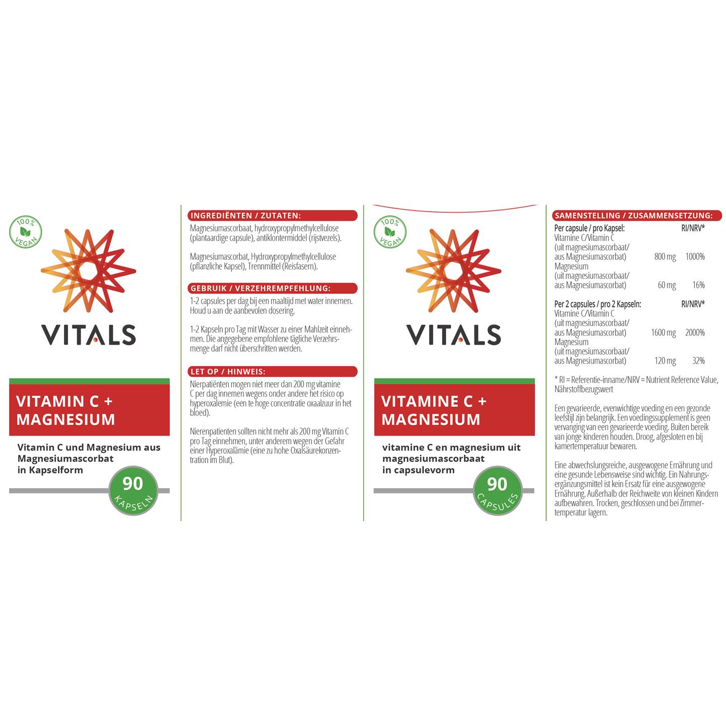 Magnesiumascorbaat, Vegetarische capsule (Hydroxypropylmethylcellulose), Rijstconcentraat (Oryza sativa).