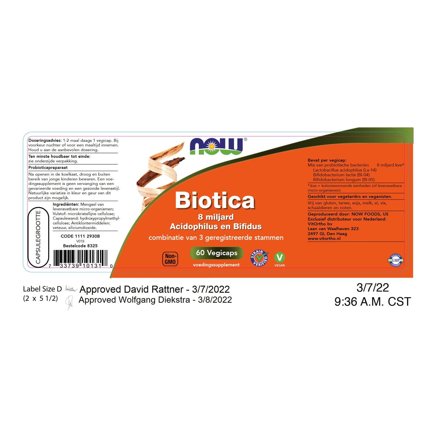 NOW Biotica 8 miljard Acidophilus en Bifidus 60 vcaps